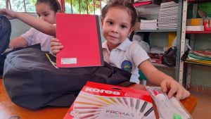 Cada kit para los estudiantes incluyó morral, cartuchera, carpetas, cuadernos, reglas, lápices, lapiceros, termo y un kit de higiene oral con cepillo, crema dental y estuche.